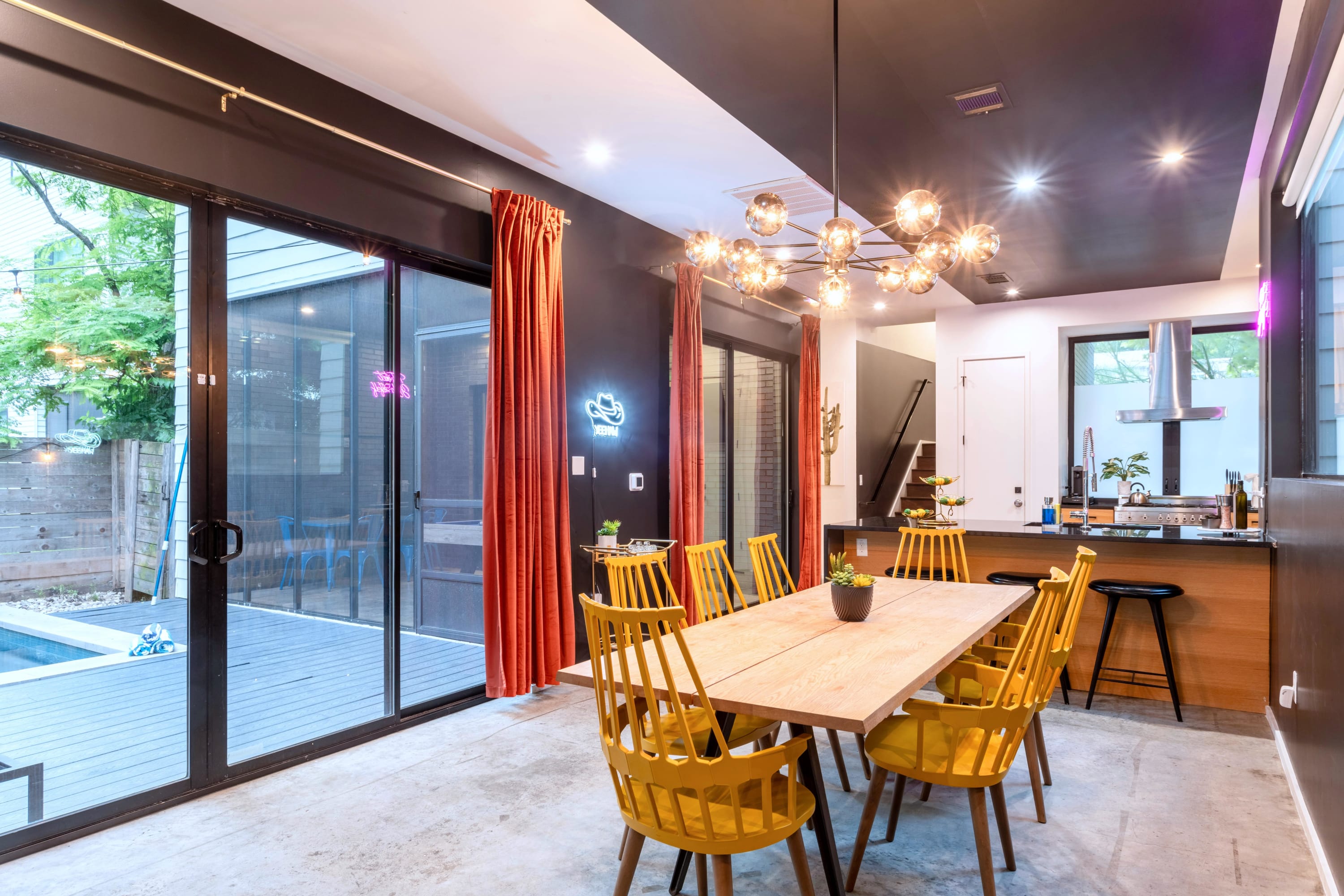 In the heart of Austin’s vibrant spirit, urbanstay•us embraces the city’s quirky charm. Our two-home complex is a celebration of Austin’s artistic culture, featuring funky art and neon lights that transport you to a world where ordinary just doesn’t cut it. Whether you’re an art lover or just looking for something unique, this is a place where the eccentric thrives and memories are made. Experience Austin like never before in this home—book your stay now!